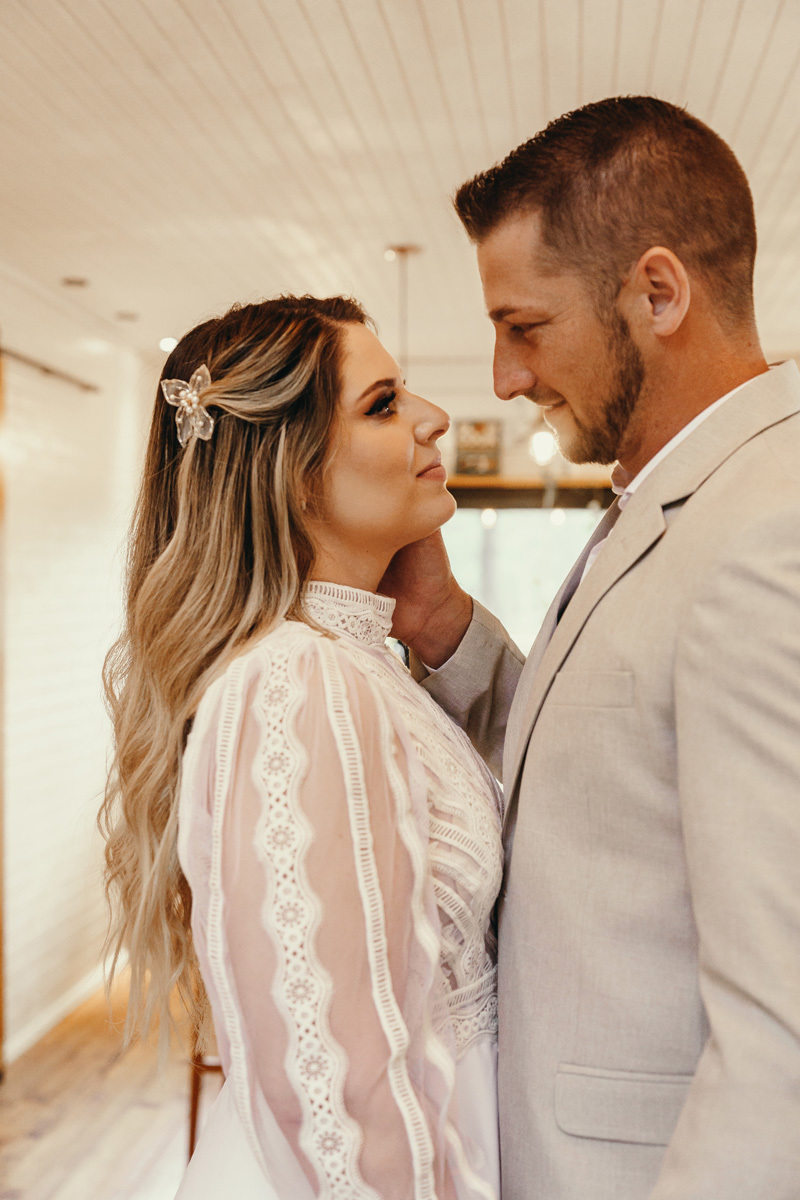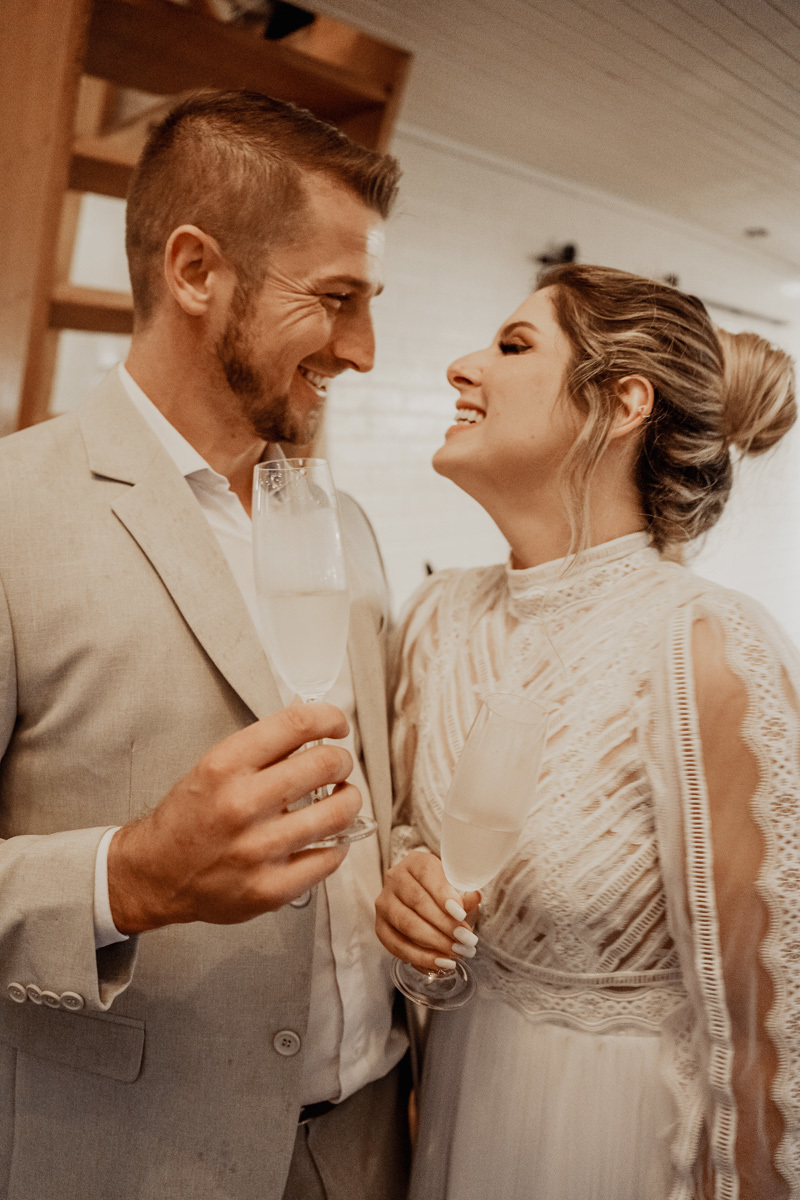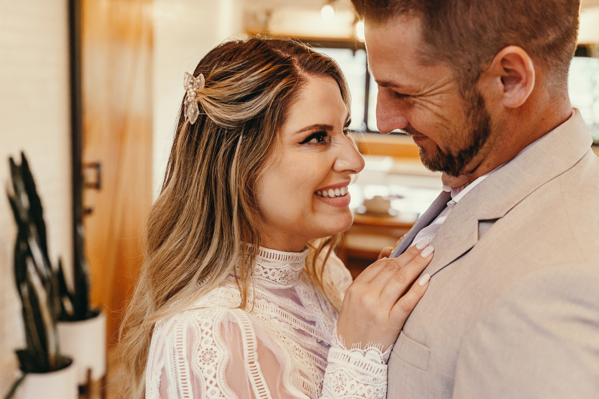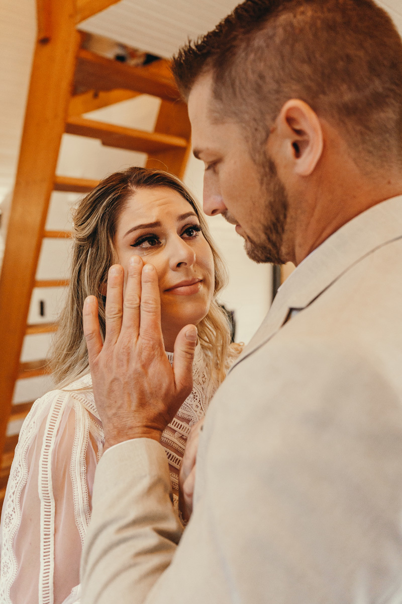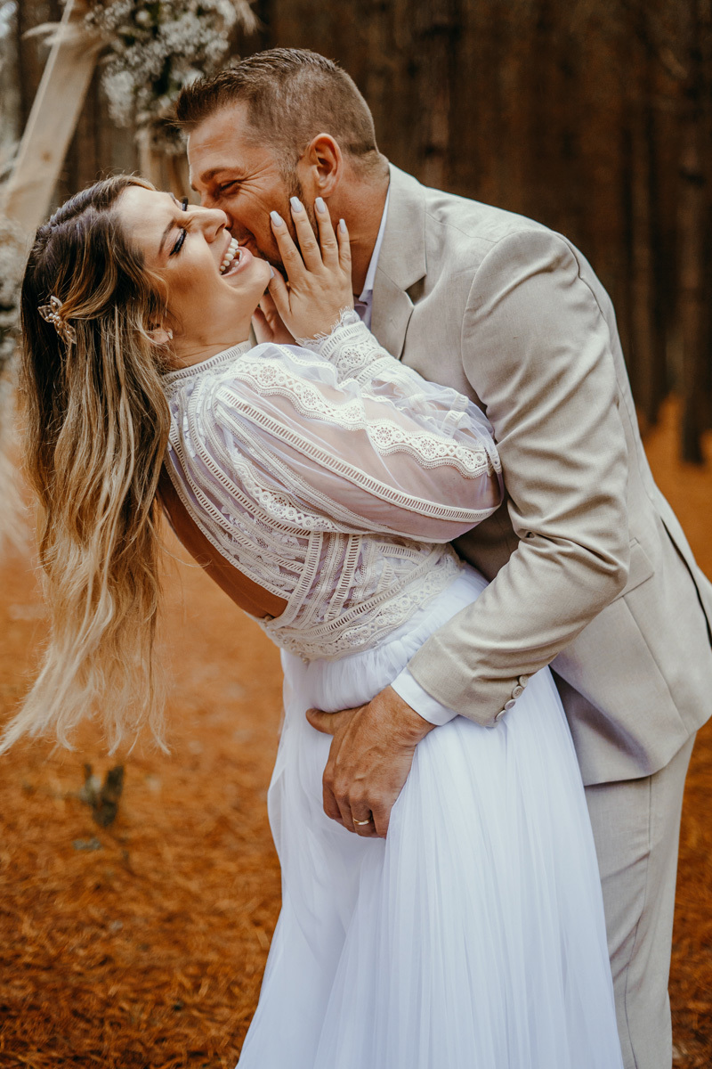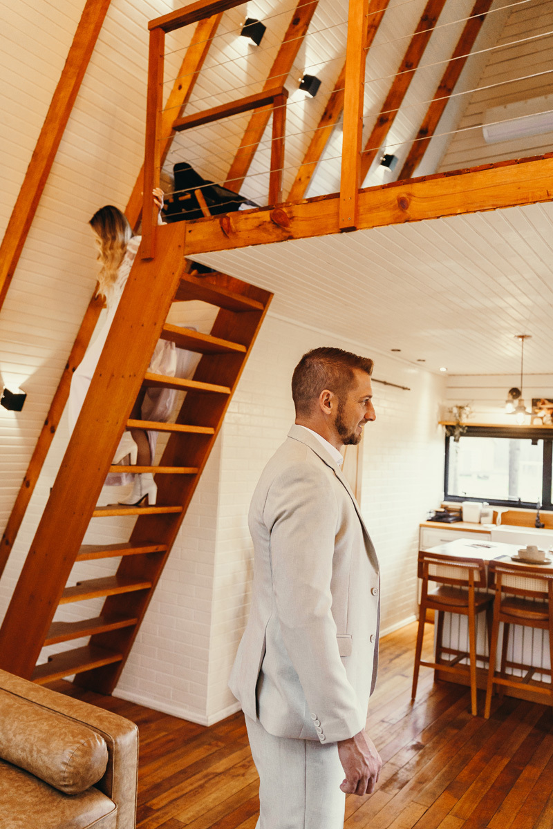 Eles estavam maravilhosos, o vestido boho, o costume em linho, a carta de votos escrita a mão. O primeiro encontro dentro da cabana, as lagrimas de emoção e alegria. A chuva caia la fora e eles optaram por viver esse momento bebendo um vinho.