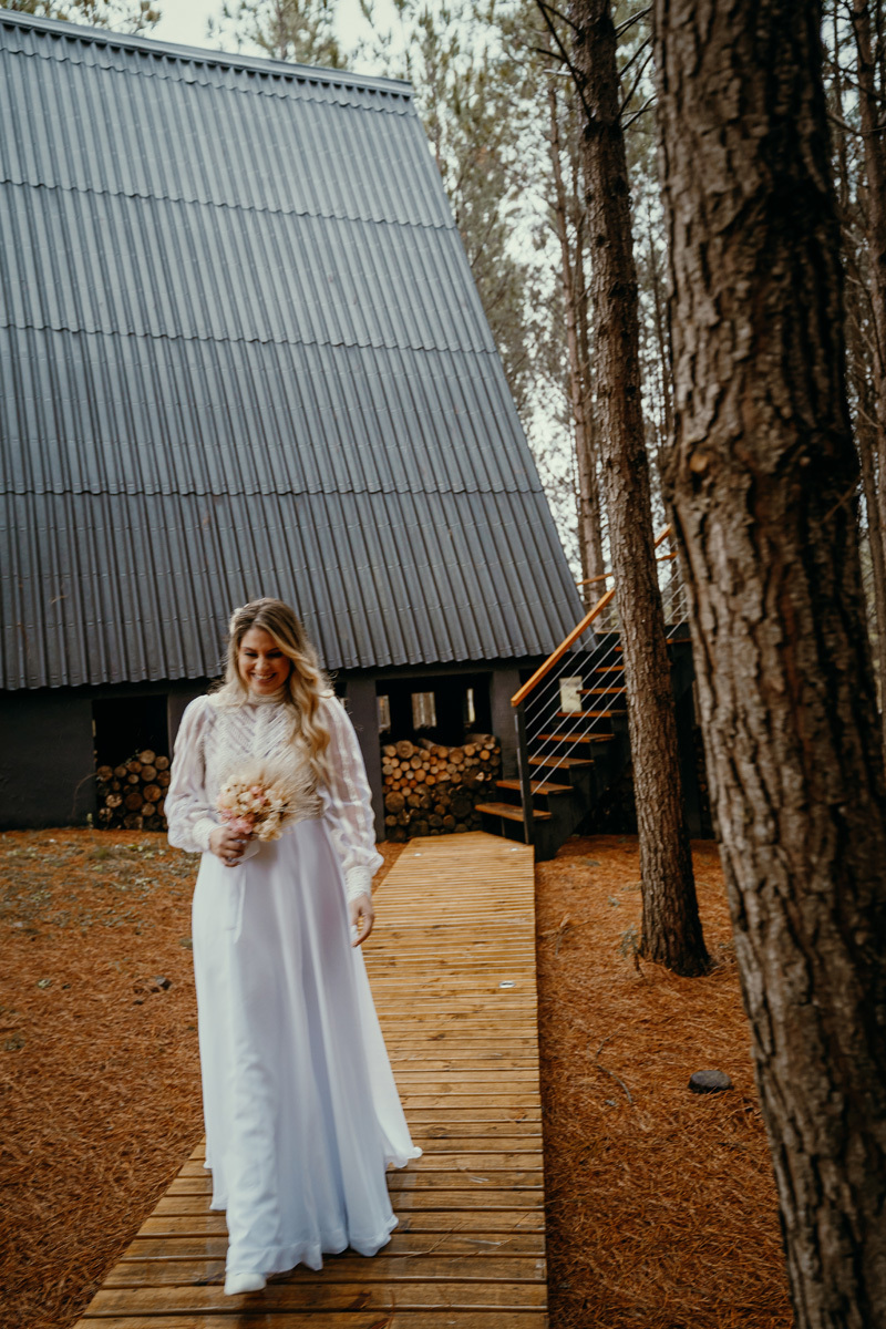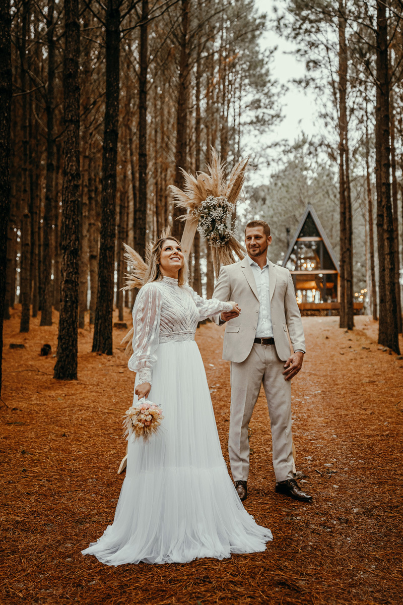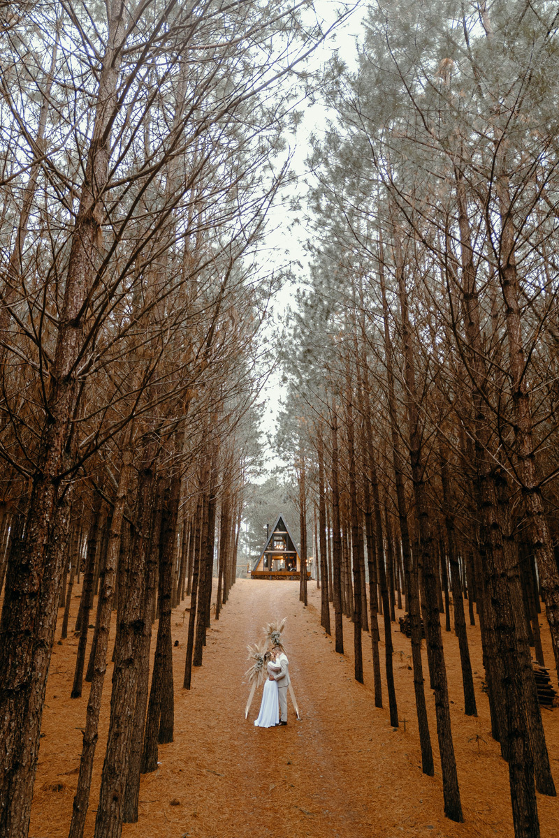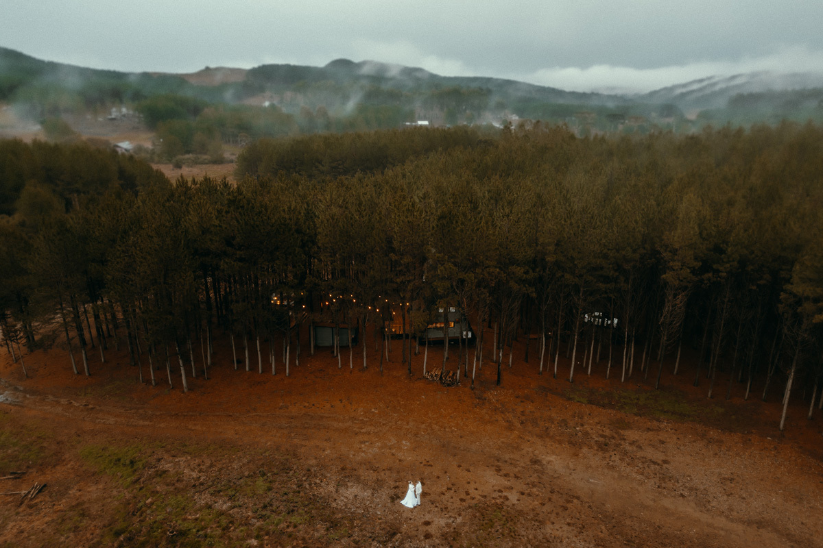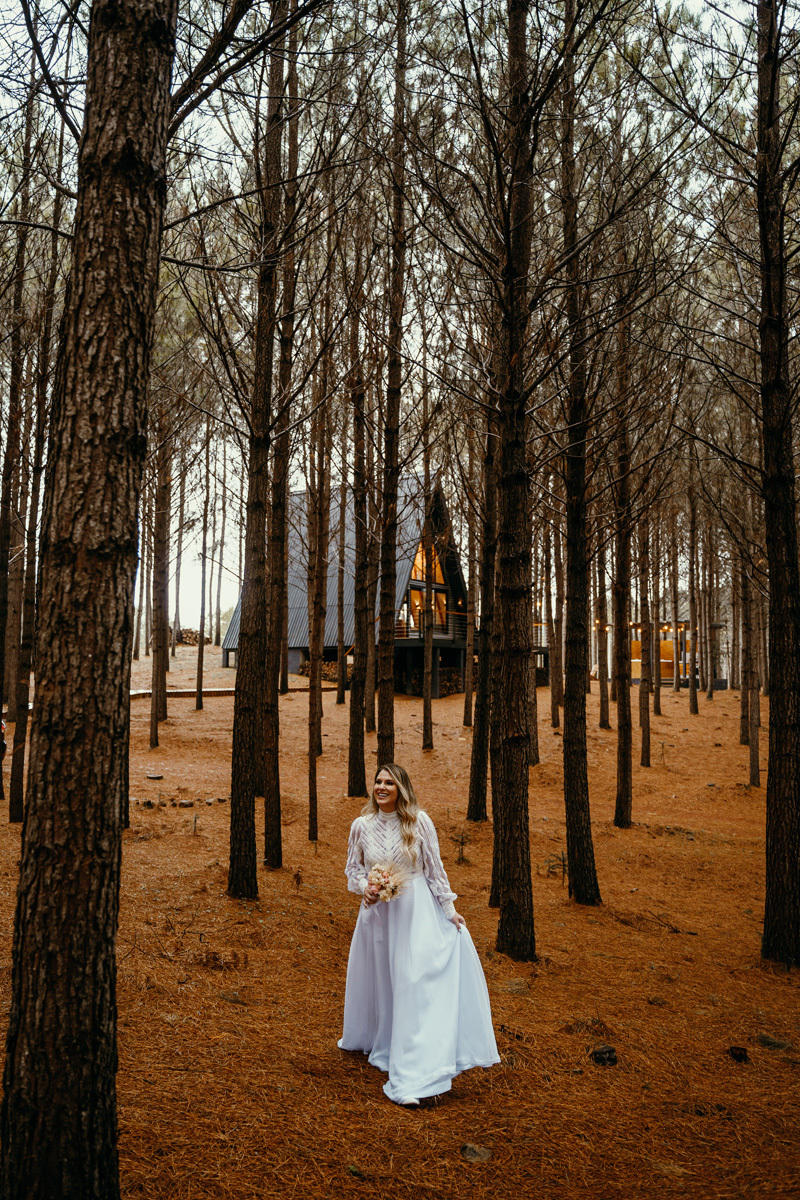 Depois de meses de planejamento, tensão pela previsão do tempo e muita expectativa, finalmente chegou o grande dia da Claudia e do Juliano. O casal escolheu um cenário rústico e maravilhoso para sua celebração, uma cabana nas montanhas de Cambará do Sul, em meio uma plantação de pinus, a exuberante Cabana Alameda.