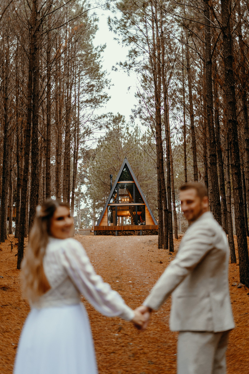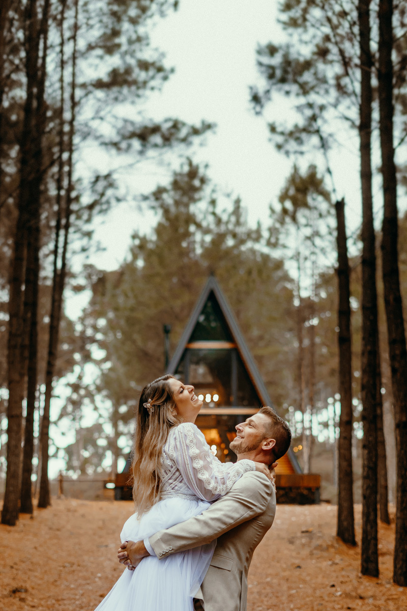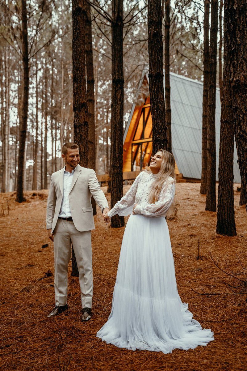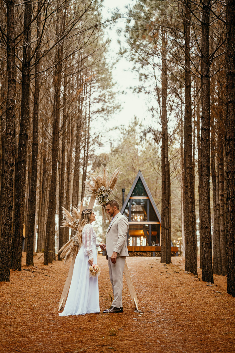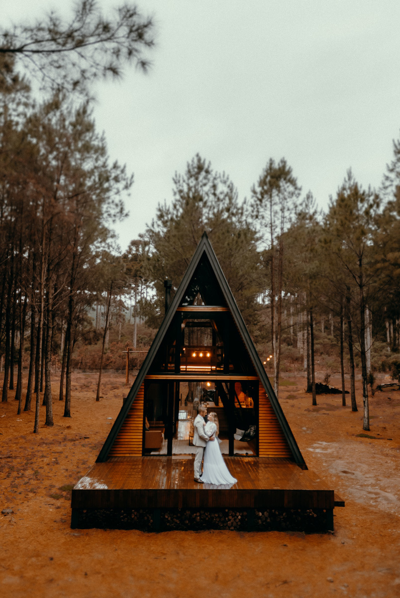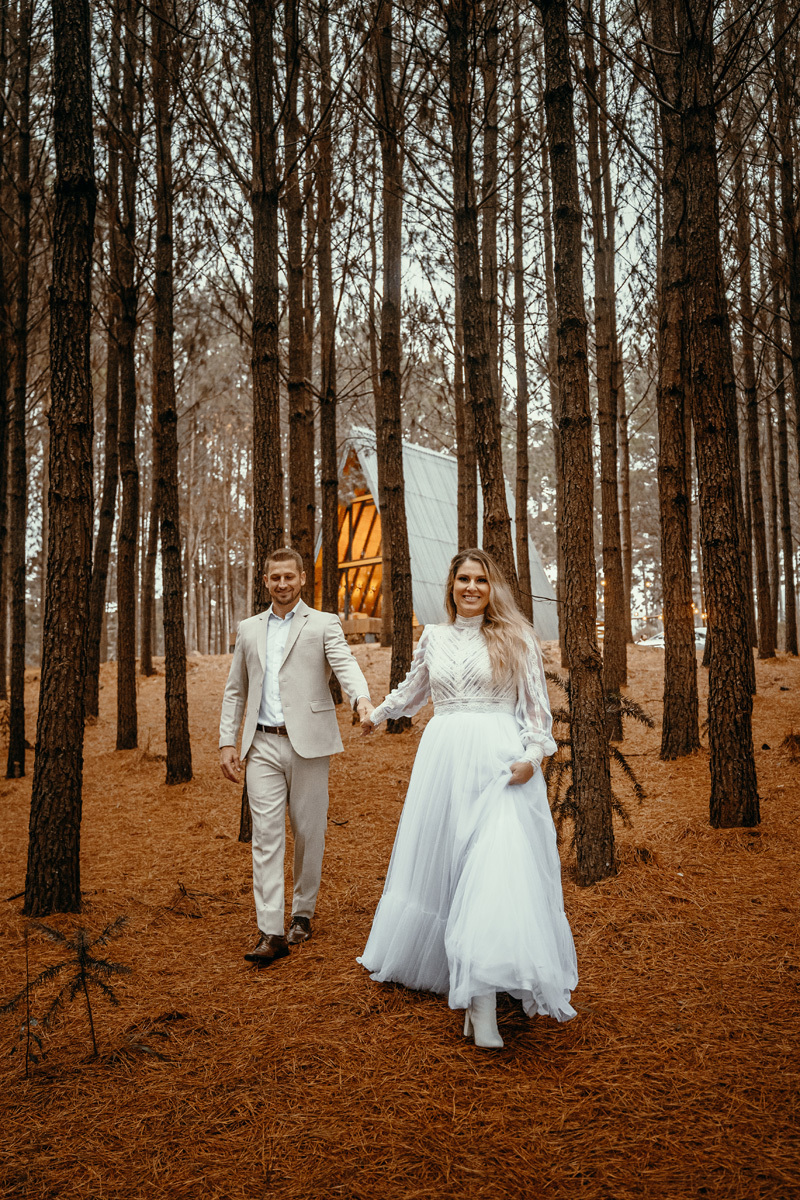 Depois de meses de planejamento, tensão pela previsão do tempo e muita expectativa, finalmente chegou o grande dia da Claudia e do Juliano. O casal escolheu um cenário rústico e maravilhoso para sua celebração, uma cabana nas montanhas de Cambará do Sul, em meio uma plantação de pinus, a exuberante Cabana Alameda.