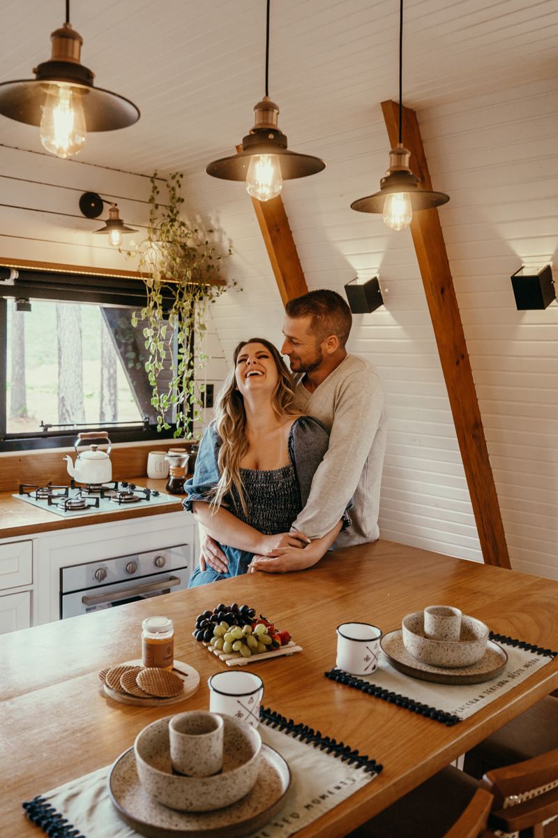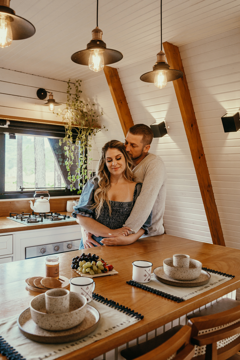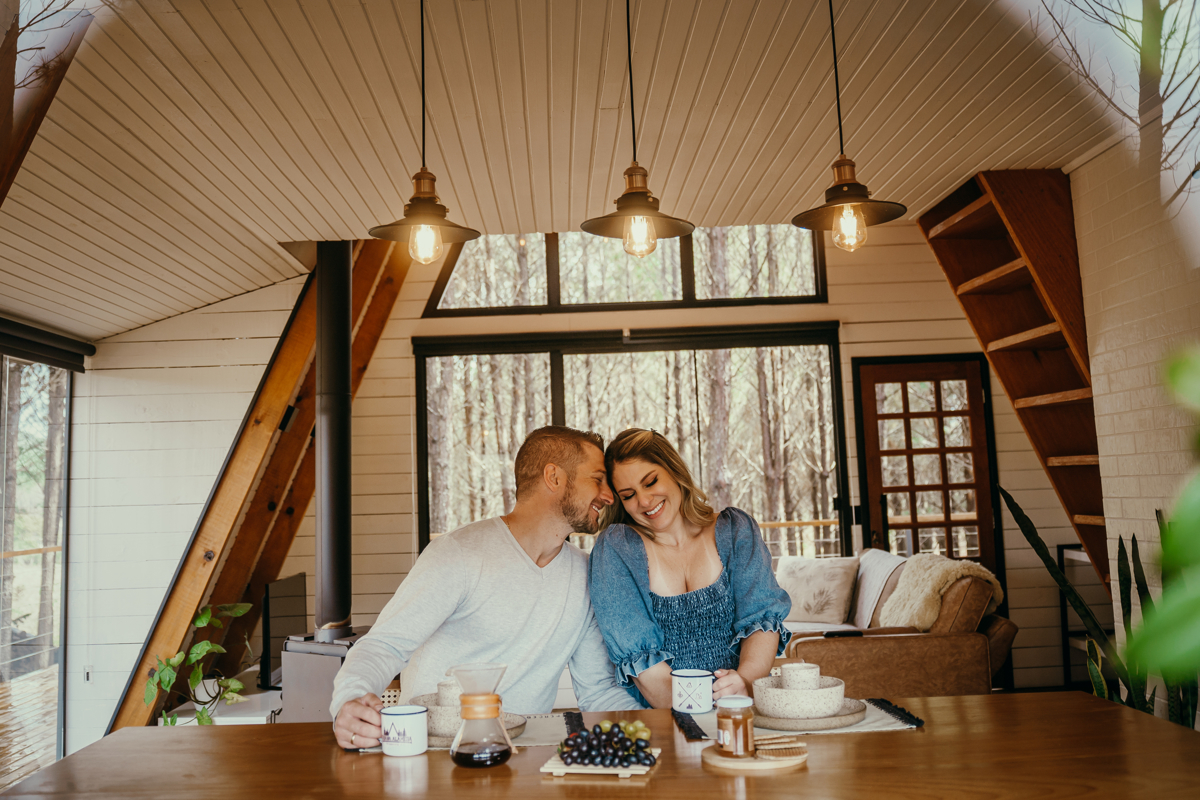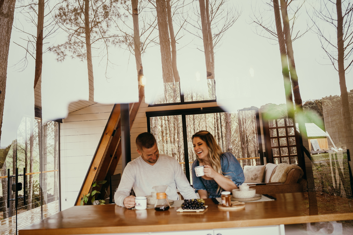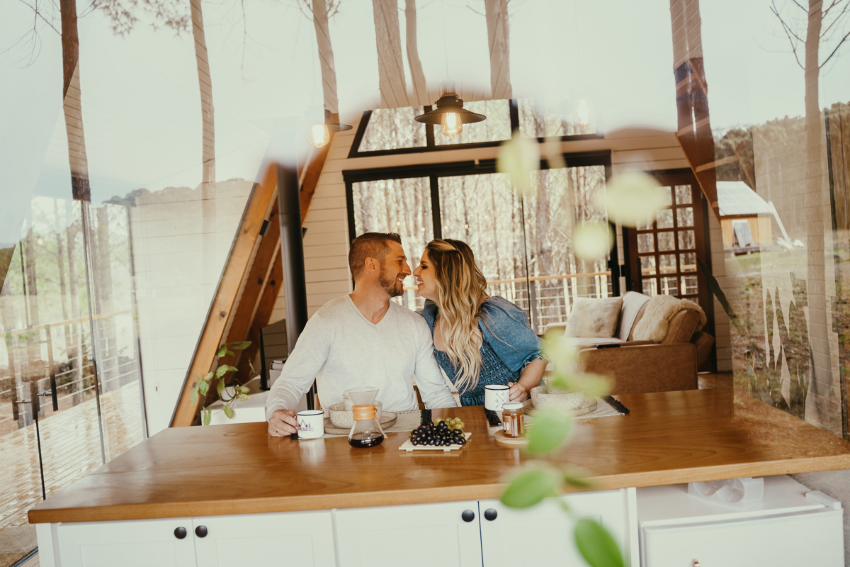 Eles compartilharam um café da manhã íntimo, trocaram olhares carinhosos e refletiram sobre a jornada que os trouxe até ali. Já estavam fazendo planos pras próximas viagens, cabanas e cidades que iriam conhecer. Era uma manhã cheia de esperança, alegria, e o começo de uma nova jornada como parceiros de vida.