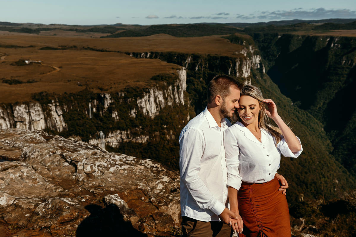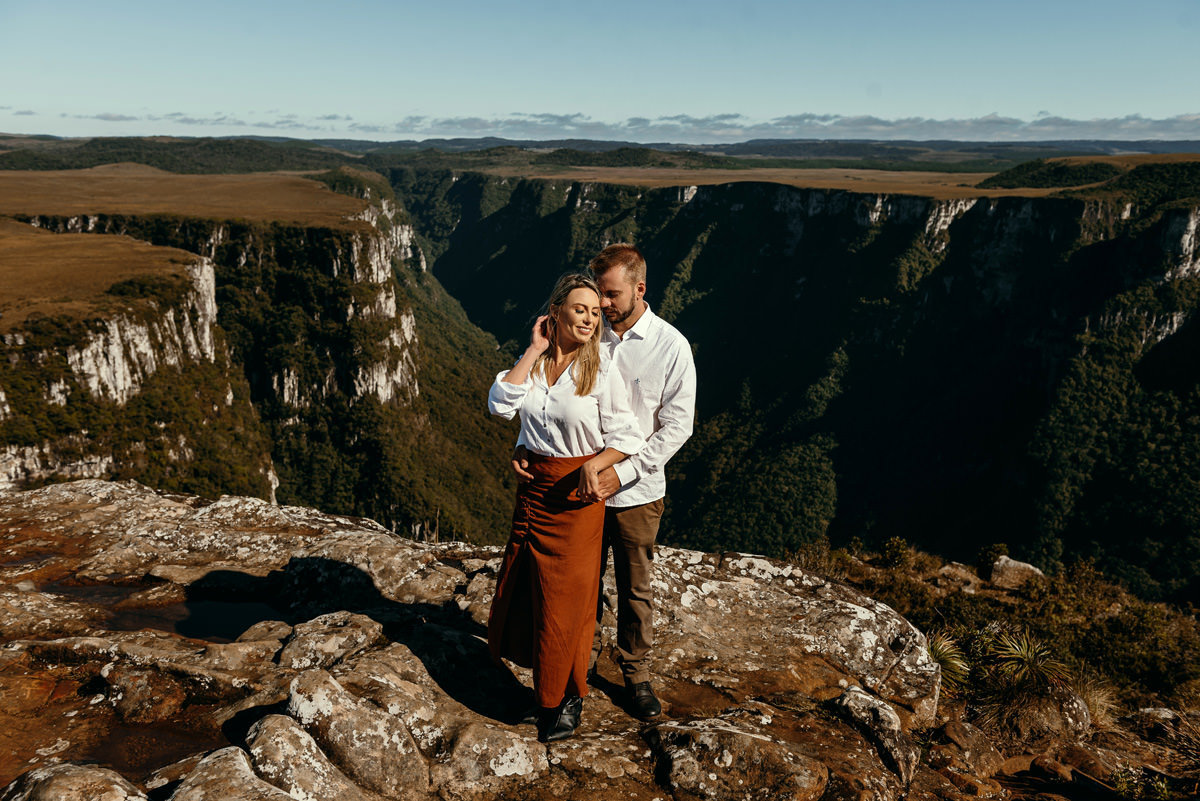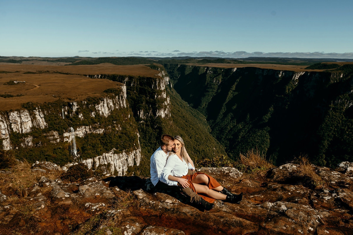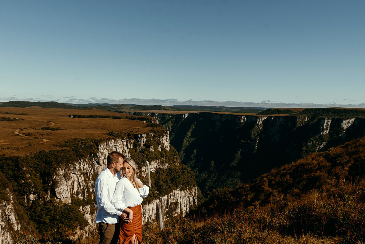 Depois de três remarcações por causa da chuva e da pandemia, na quarta vez foi decidido que iríamos independente do tempo, e fomos, rumo a Cambará do Sul! Encaramos a chuva, o vento e o frio. No outro dia acordarmos cedo, tomamos um café no hotel, e saímos em busca do precioso sol! E lá estava ele, e apesar de um vento de renguear cusco, como dizem aqui no sul, esse casal se manteve firme o tempo todo.