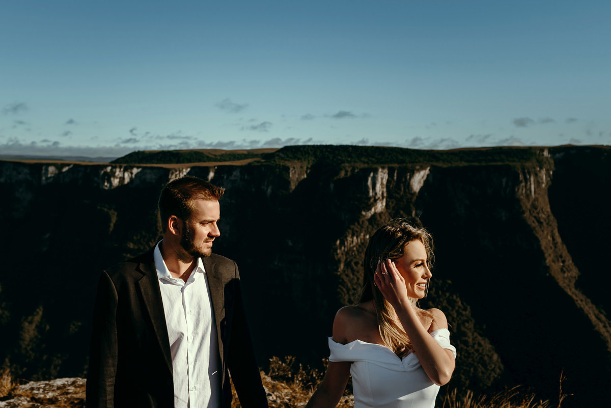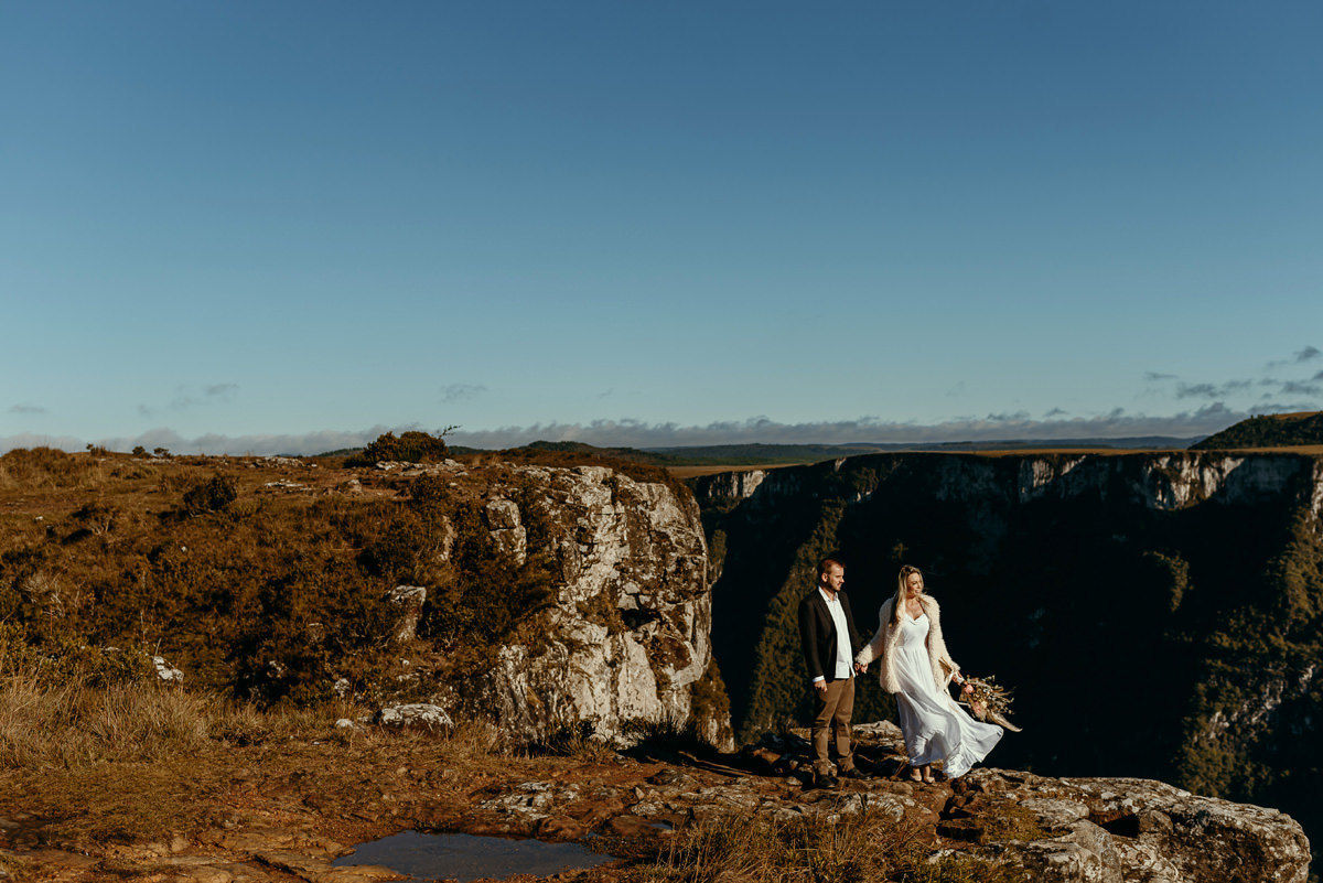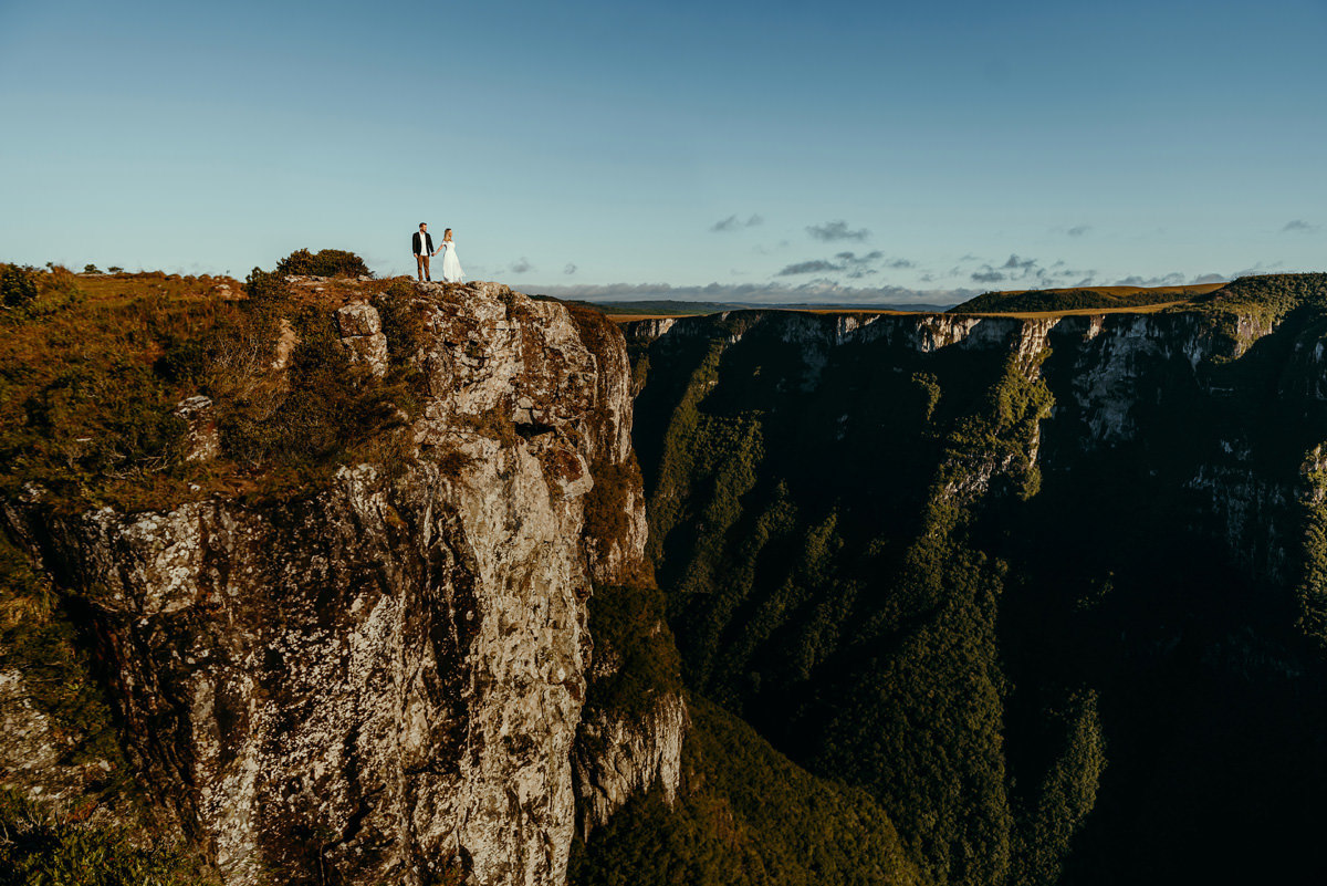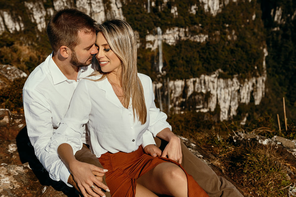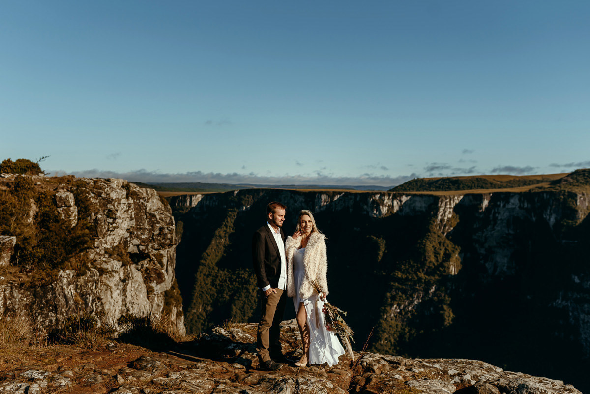 Depois de três remarcações por causa da chuva e da pandemia, na quarta vez foi decidido que iríamos independente do tempo, e fomos, rumo a Cambará do Sul! Encaramos a chuva, o vento e o frio. No outro dia acordarmos cedo, tomamos um café no hotel, e saímos em busca do precioso sol! E lá estava ele, e apesar de um vento de renguear cusco, como dizem aqui no sul, esse casal se manteve firme o tempo todo.