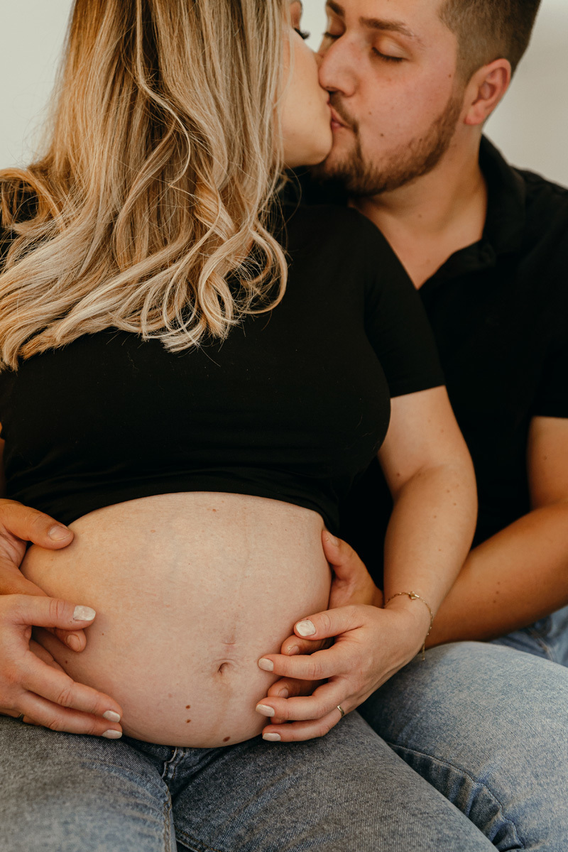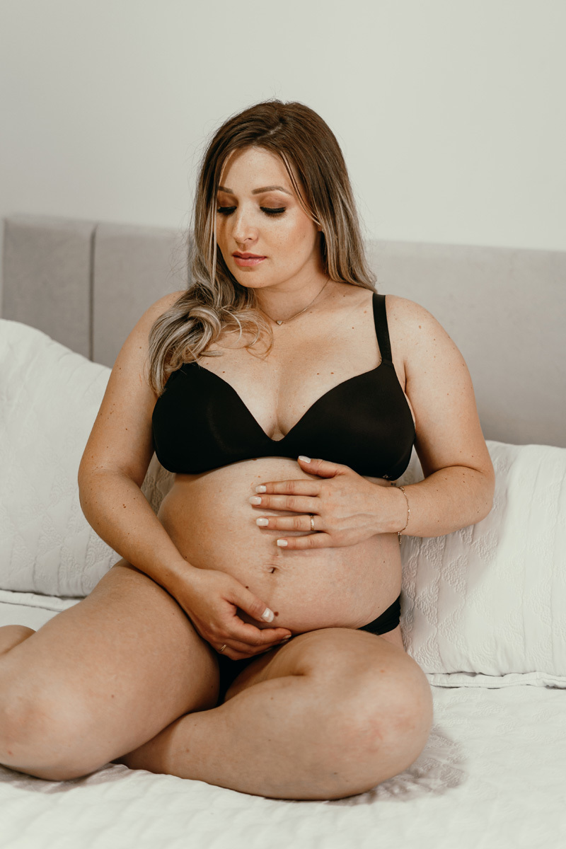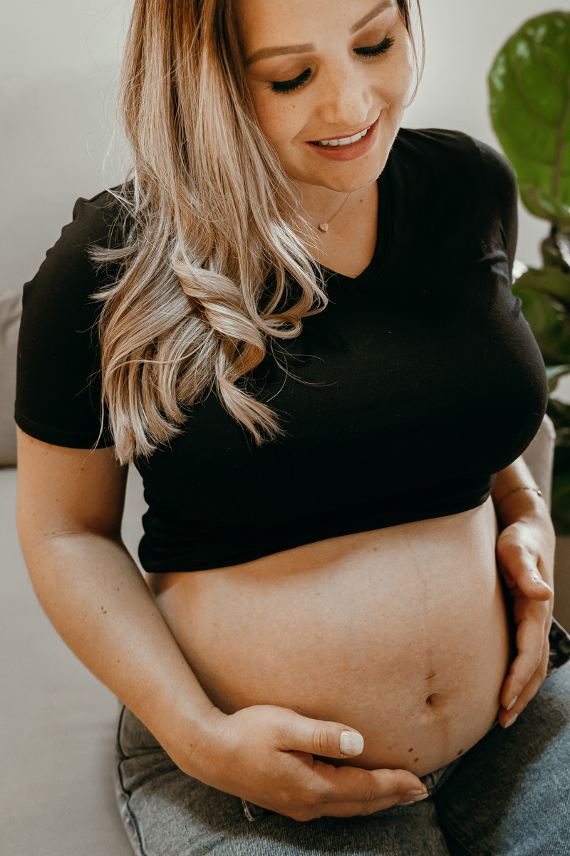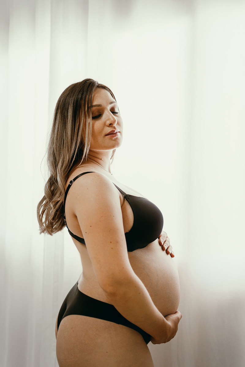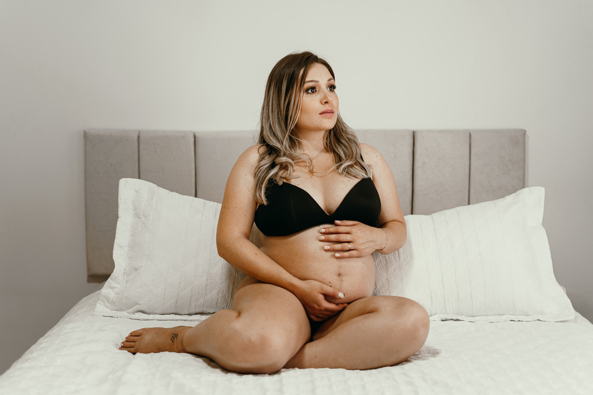 A Gabriela entrou em contato comigo e combinamos os detalhes do ensaio, ela comentou que queria algo em casa pra ter memórias dessa nova fase. No local onde ela e o Rogério estavam começando essa família, essa família nova, com alguns pets, e o Joaquim.