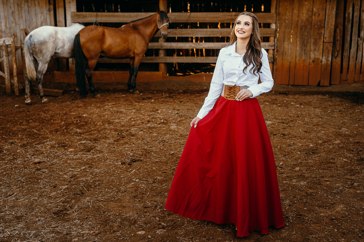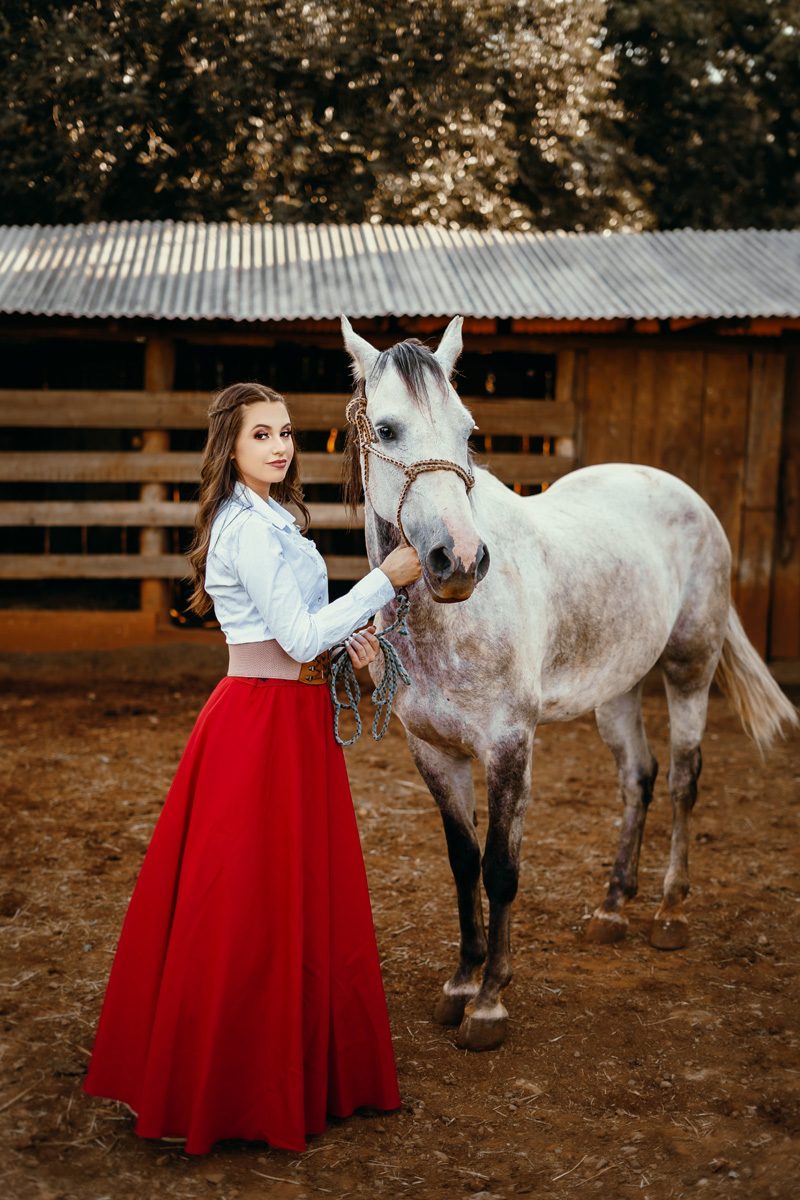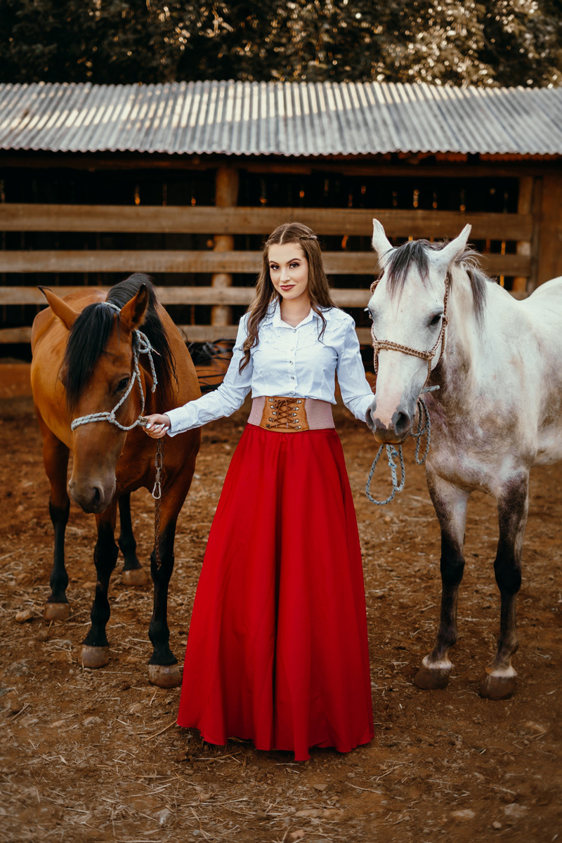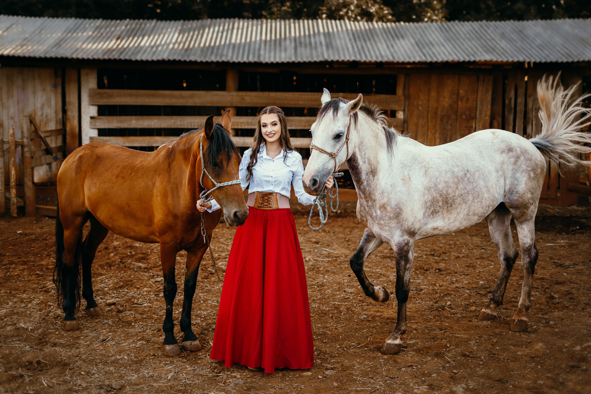 A Karen escolheu a casa dos avós e tios, lugares no interior que são cheios de significados pra ela e pra família. Exploramos cada cantinho, e claro não pode faltar a Kiara e o Iago, os cavalos da família, do qual a Karen tem muito amor e conexão. A roupa tradicionalista gaúcha também faz parte da vida da Karen, sendo assim usamos ela nessa primeira parte do ensaio. As araucárias plantadas pelo pai e os tios da Karen formaram um cenário perfeito.