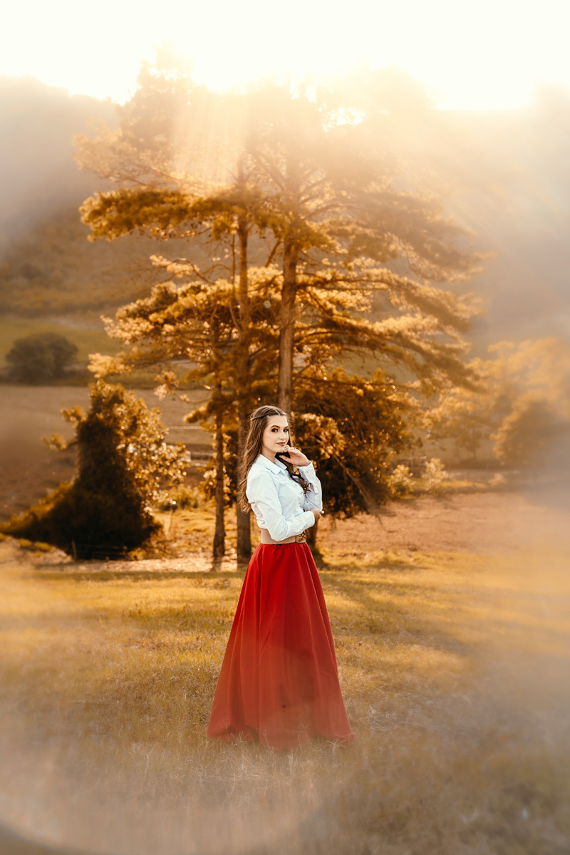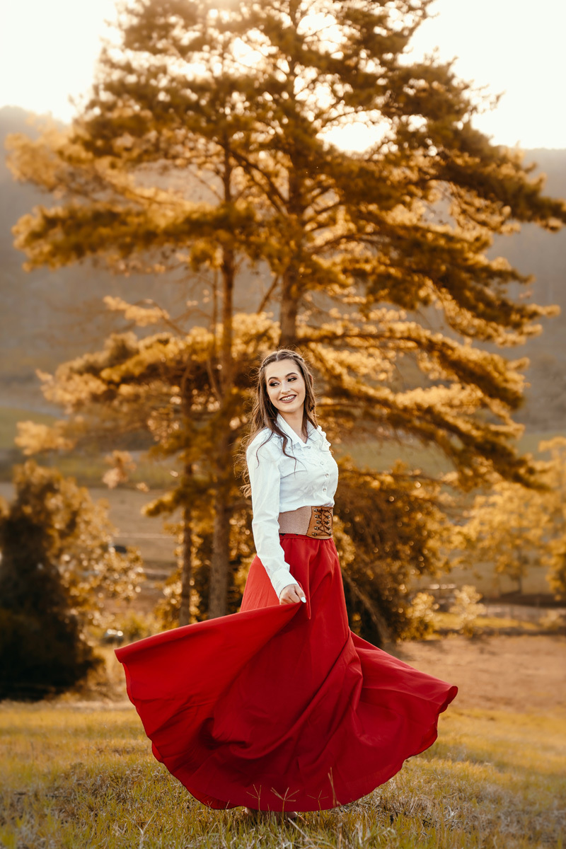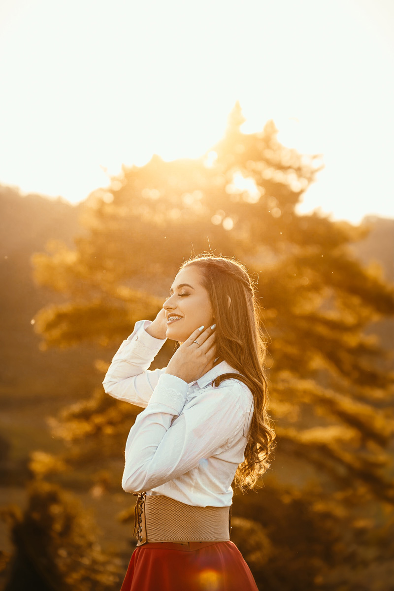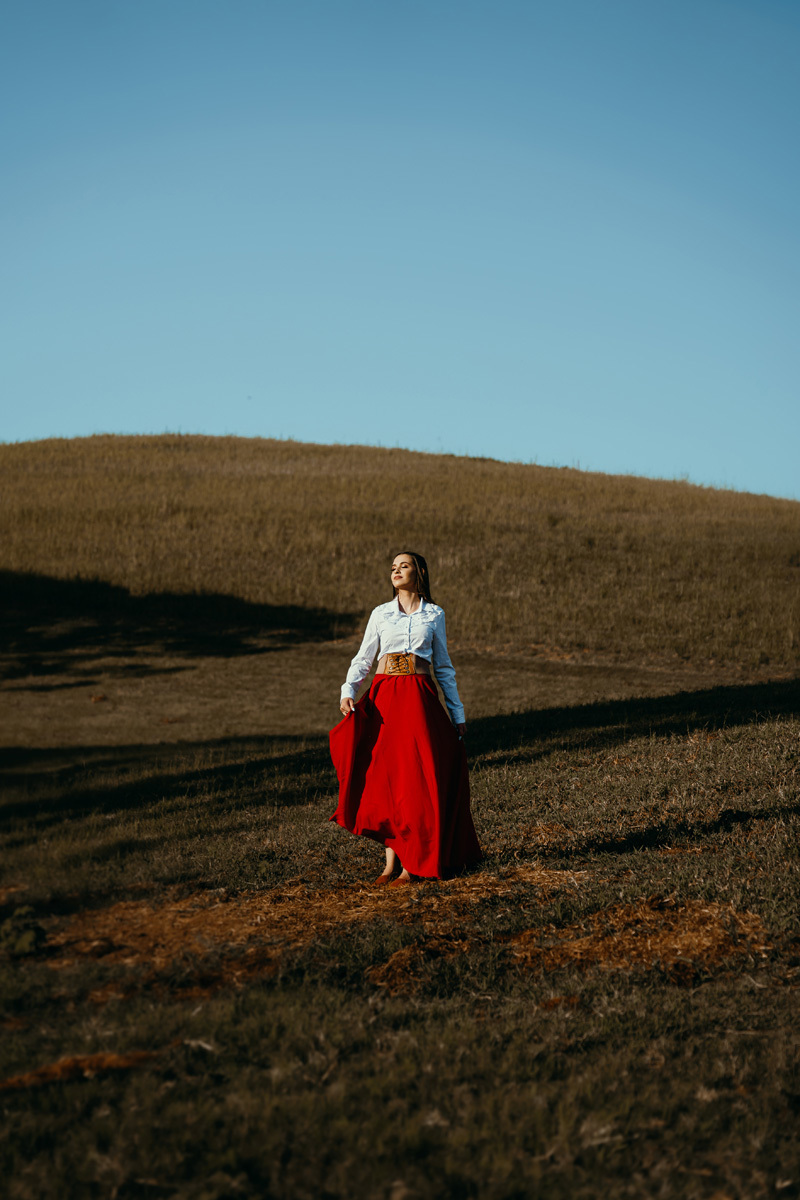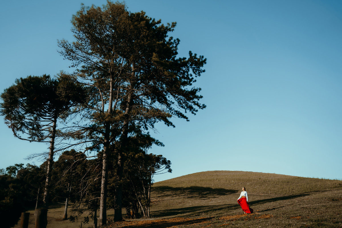 A Karen escolheu a casa dos avós e tios, lugares no interior que são cheios de significados pra ela e pra família. Exploramos cada cantinho, e claro não pode faltar a Kiara e o Iago, os cavalos da família, do qual a Karen tem muito amor e conexão. A roupa tradicionalista gaúcha também faz parte da vida da Karen, sendo assim usamos ela nessa primeira parte do ensaio. As araucárias plantadas pelo pai e os tios da Karen formaram um cenário perfeito.