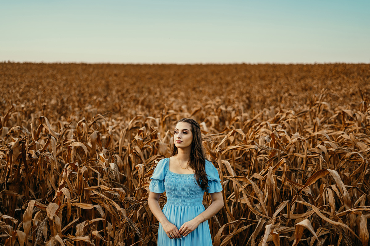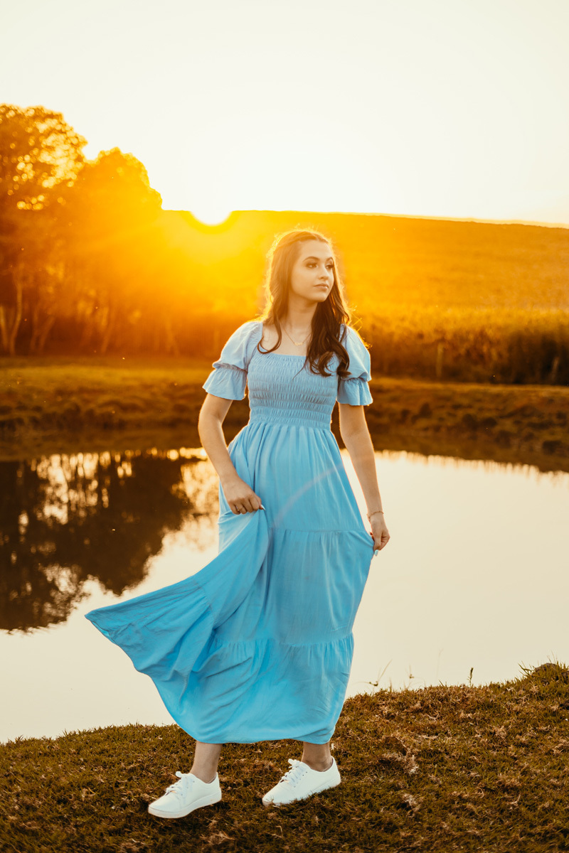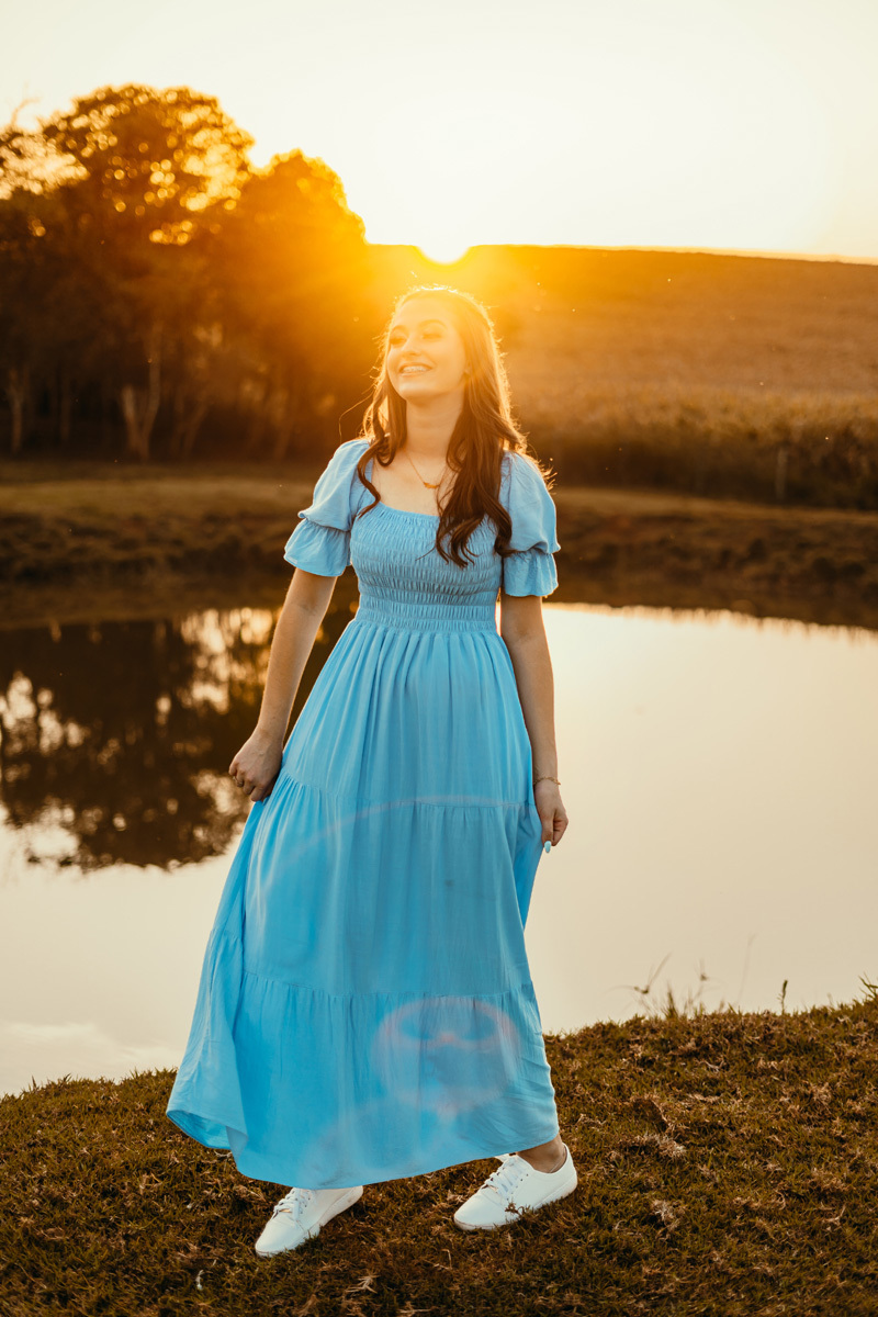Logo em seguida exploramos o açude com um por do sol incrível, e a lavoura com milho que é cor complementar do azul e deixou essa paleta de cores ainda mais linda.